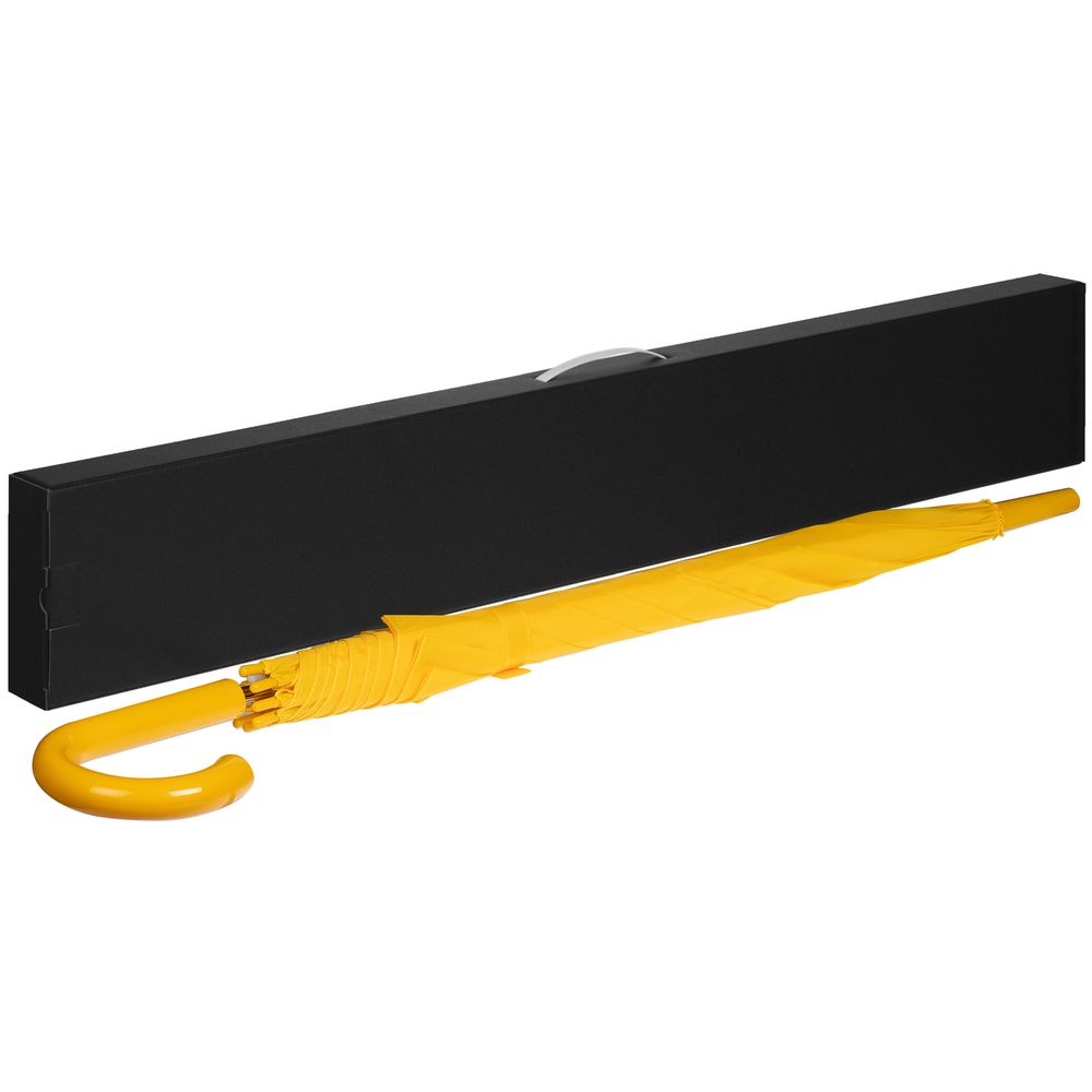 Самосборная коробка из микрогофрокартона с матовой ламинацией для зонта-трости со вставной пластиковой ручкой.