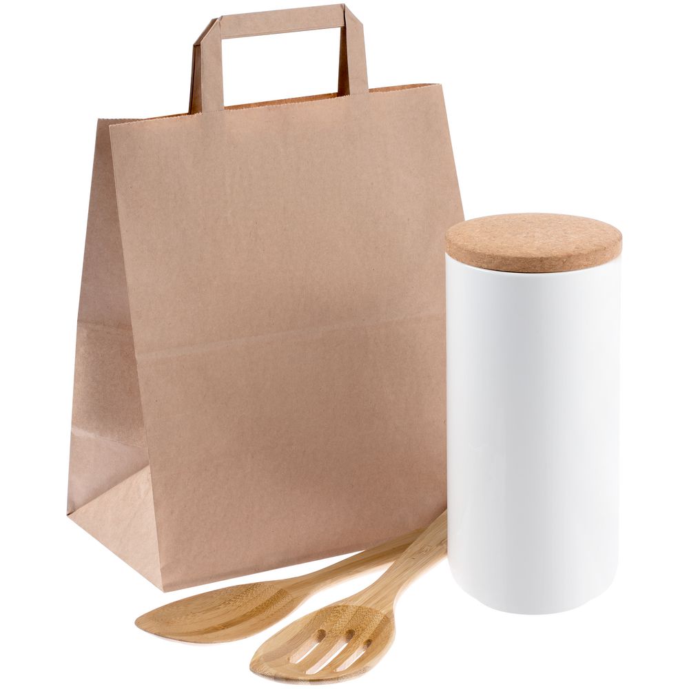Набор Fusilli — отличный подарок тем, кто любит макароны. Большая банка с плотно прилегающей пробковой крышкой идеальна для хранения макаронных изделий, а бамбуковые лопатки удобны для подачи готовой пасты.